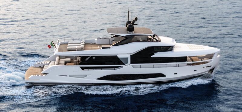 Ma la vera punta di diamante, tra le première Ferretti Group, è Custom Line Navetta 38. Capolavoro di ingegneria e stile made in Italy, Custom Line Navetta 38 è l’ultimo superyacht “made-to-measure” (su misura) della linea Navetta. Un design innovativo con connessioni tra interni ed esterni e ampi spazi di convivialità: il beach club di poppa, sul pozzetto del ponte principale, è ampliabile su entrambi i lati per offrire un contatto diretto con il mare. Custom Line Navetta 38 è anche lo yacht di Ferretti Group utilizzato da Alberto Galassi (proprietario anche di un motoscafo Riva modello Aquarama e di un Rudy del 1974), il quale ha contribuito in prima persona allo stile della barca insieme a sua moglie, Antonella Ferrari (figlia di Piero Ferrari e nipote del grande Enzo Ferrari, il “Drake” fondatore della celebre casa automobilistica di Maranello).