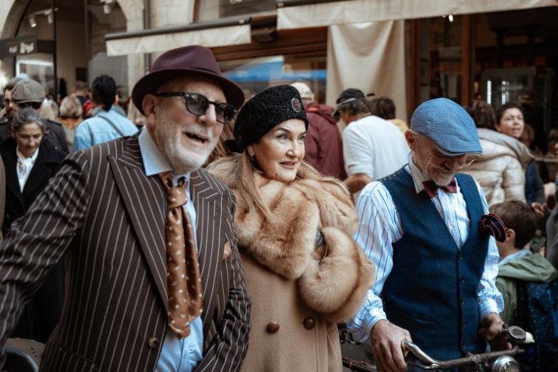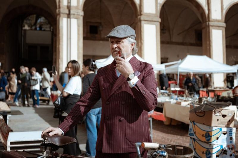 Le pietre dorate dei palazzi storici, i vicoli stretti, le piazze che si aprono improvvise come quinte teatrali hanno accolto biciclette d’epoca lucidate con cura e orgoglio. Non erano semplici mezzi di trasporto, erano compagne di viaggio di un racconto antico. Uomini e donne, arrivati da tutta Italia, hanno pedalato con passo lento, consapevoli di interpretare un ruolo: quello di custodi del buon gusto. L’abito scelto con attenzione, la postura elegante, il sorriso spontaneo hanno trasformato ogni partecipante in un personaggio degno di un romanzo. Perché “Ritorno al Fascino” non è una semplice manifestazione: è un manifesto estetico. La parola chiave è dandy. Non nel senso caricaturale che spesso gli viene attribuito, ma come modo di vivere, come esercizio di stile interiore. Il dandy non esibisce: esprime. Non si traveste: si rivela. Il suo modo di camminare è un’affermazione di libertà, la sua eleganza un atto di amore verso il mondo. Ed è questa filosofia che ha guidato Alessio Ginestrini e Stefania Severi, ideatori dell’evento e anima del Dandy Days, affiancati dalla co-organizzazione e dal sostegno di Sandro Sarri, presidente della storica istituzione Casa Thevenin. Una presenza che ha ricordato a tutti che lo stile, se non ha un cuore, è solo superficie.