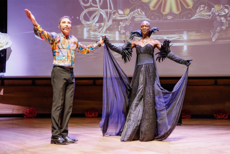 Accanto ai già citati SK&MS Design e Yvonne Paiano, il palcoscenico ha ospitato una costellazione di talenti creativi. Alfredo Nocera, inventore dell’Instant Fashion, ha portato la sua visione di moda immediata e visionaria. Marzia Fappani Lapetalaia ha presentato un abito artistico dedicato alla purezza della donna, incorniciato da coreografiche rose giganti che hanno conferito al palco un respiro scenografico di grande impatto. Andrea Rizzo, designer emergente, ha completato una selezione capace di dialogare tra tradizione artigianale e linguaggio contemporaneo. Sul versante artistico, la serata ha riservato performance di assoluto livello. Carol Alberio e Luigi Ferrari, dancers di showdance, hanno incendiato il palco con due performance spettacolari. La Scuola di Danza AIM Academy Milano ha portato rigore tecnico e grazia compositiva. Egidio La Gioia e Rossana Seghezzi, con il corpo di ballo della Primaballerina Centro Danza, hanno regalato momenti di pura eleganza coreografica. A suggellare il tutto, la voce prorompente di Amy Diaby, capace di riempire ogni angolo del teatro con un’intensità che ha lasciato il pubblico in silenzio ammirato.
