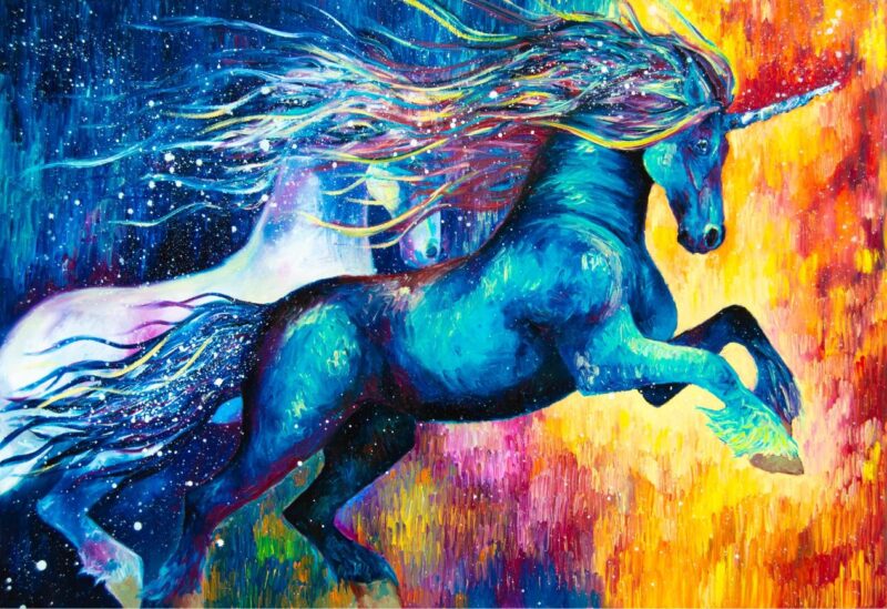 I suoi dipinti sono l’espressione di un’anima, feroce e pacata. Apparentemente fragile come la natura rappresentata da campi fioriti, o selvaggia quando rappresentata da belve fiere e possenti. Leonardo da Vinci scrisse: “Salvatico è colui che si salva” – “Selvatico è colui che si salva”. L’etimologia di selvatico coniata dal Maestro di tutti i tempi sembra coerente con la natura dell’arte della Magni. Elefanti titanici che si sciolgono nel proteggere il loro cucciolo, cosmogonie che gravano su cieli di verdi paesaggi, donne sospese nella gravità, con il corpo immerso nell’acqua ed un viso incognito che si affaccia al respiro. Oggi vive la sua ultima svolta.