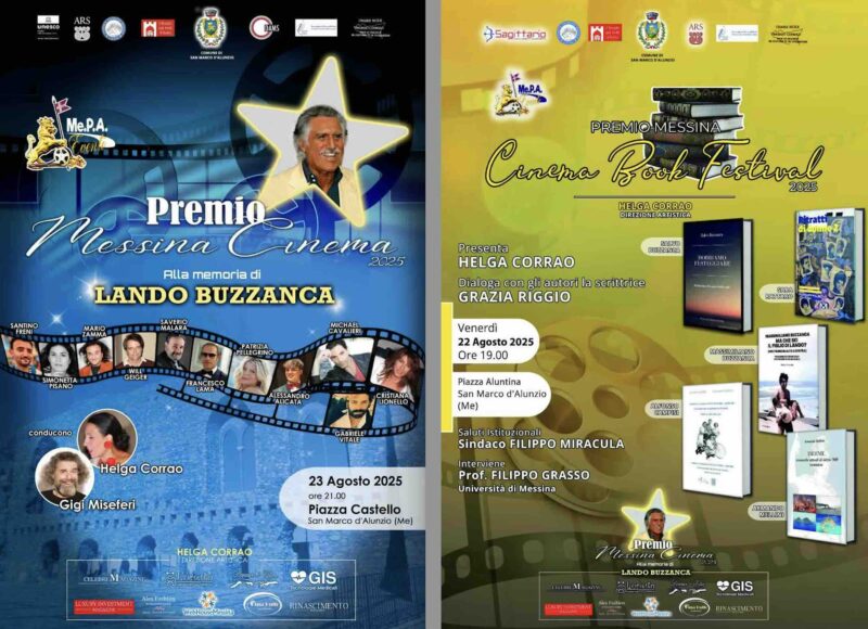 Il Premio Internazionale Messina Cinema non sarà soltanto gala e riflettori: la vigilia dell’evento, venerdì 22 agosto alle ore 19.00 in Piazza Aluntina, si terrà infatti il Messina Cinema Book Festival, un momento dedicato alla letteratura e al dialogo con gli autori. Moderato da Helga Corrao, vedrà la scrittrice Grazia Riggio conversare con Salvatore Buzzanca, Massimiliano Buzzanca, Alfonso Campisi e Armando Mellini, confermando la volontà della manifestazione di intrecciare linguaggi diversi e di dare spazio alle voci della cultura. Due giornate, dunque, che uniranno memoria, spettacolo, letteratura e impegno sociale, trasformando San Marco d’Alunzio in una capitale temporanea del cinema e della cultura.
