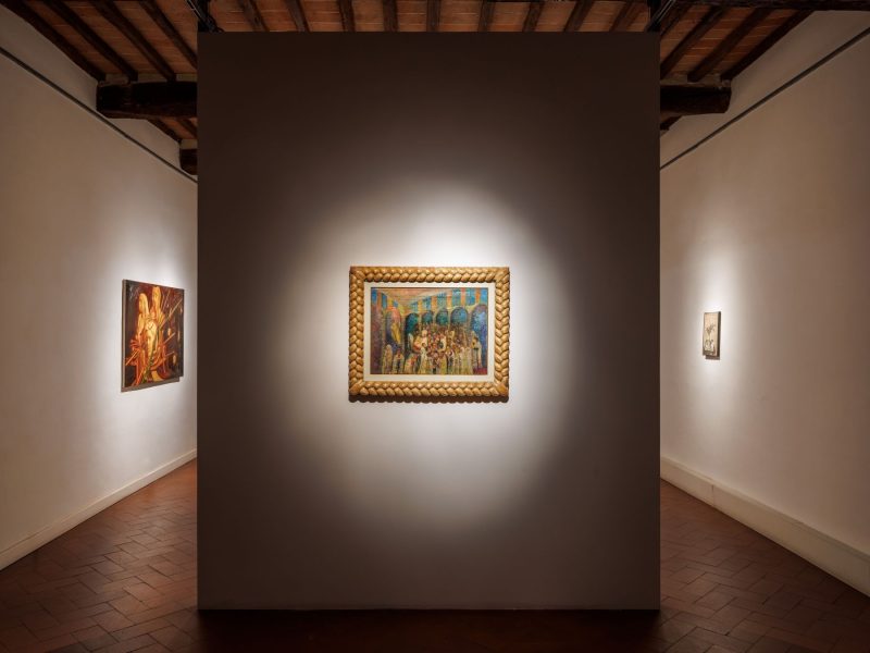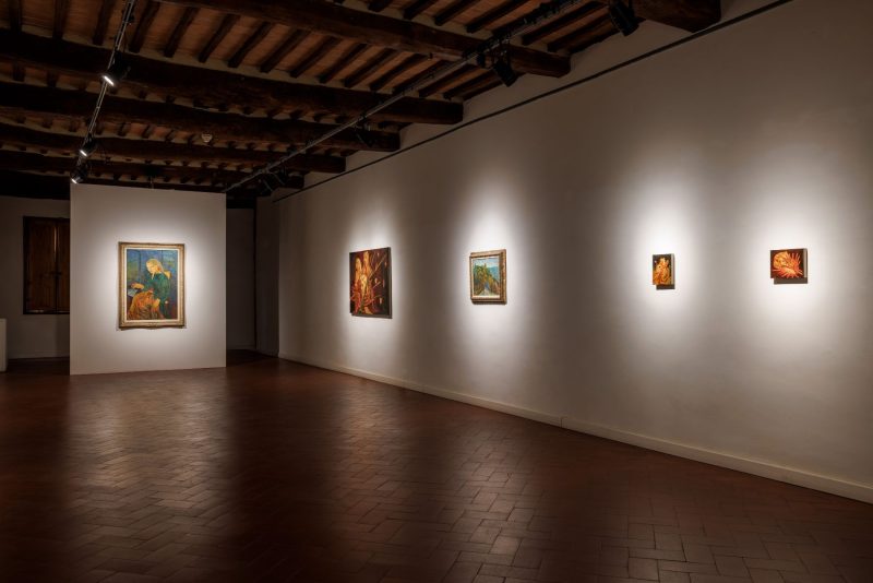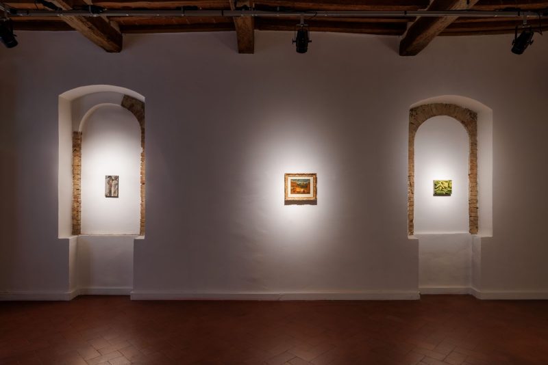 Su questo sfondo di storie aggrovigliate e triangoli amorosi, Orizzonti presenta un trio a suo modo impossibile, lontano nel tempo e nello spazio, che però trova perfetta sintesi nelle stanze medievali di Casa Masaccio. Raphaël, bohémienne nutrita di pittura e musica, adesso come allora, fa da filo conduttore e guida le opere inedite e dal bagliore mieloso dell’artista canadese Dominique Fung e i lavori materici e terrosi del tedesco Lenz Geerk.