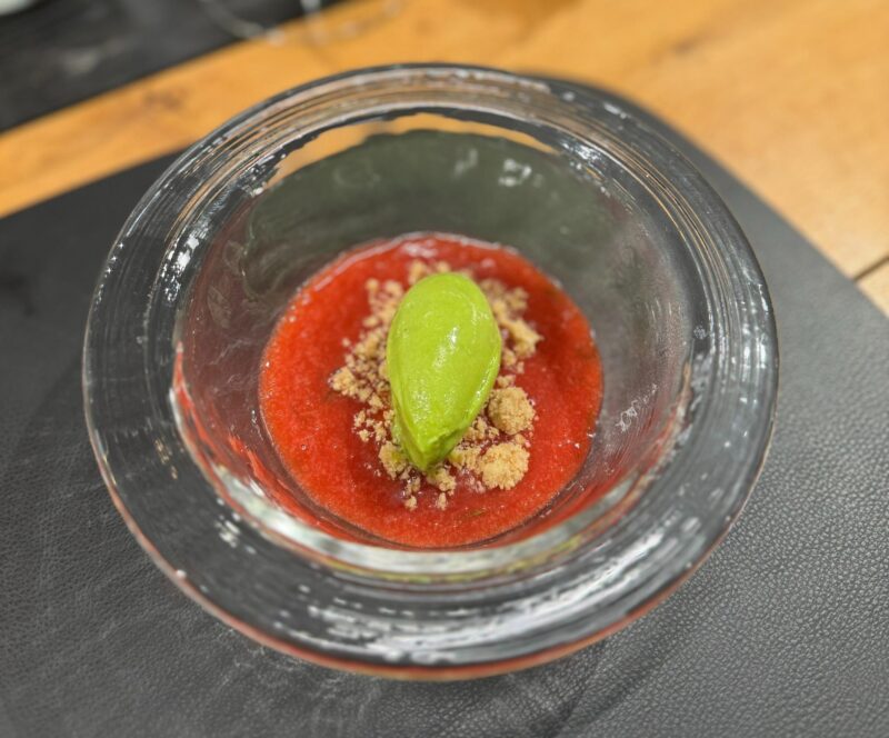 Zuppetta di fragole, sorbetto al basilico e lime