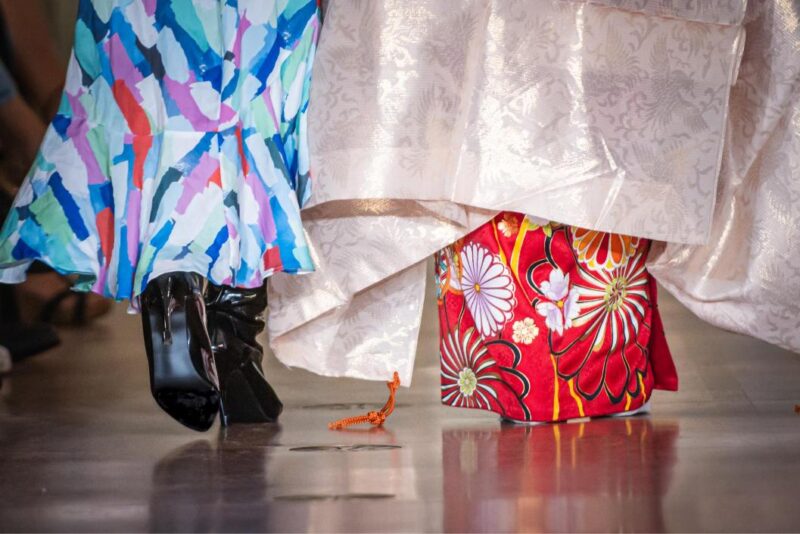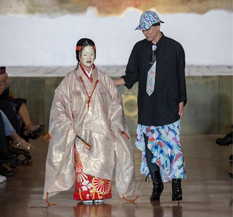 Infine, dalla scena giapponese, il marchio HIPPY SAMURAI, guidato da Kenichi Nakano e SINH, ha chiuso l’evento con una sfilata che ha fuso moda e performance teatrale. Nakano, settima generazione di una prestigiosa casa di produzione di seta, ha portato in passerella una collezione ispirata alla tradizione giapponese, esplorando l’equilibrio tra l’universo e l’umanità attraverso l’uso di geometrie e particelle di luce. La sfilata è stata arricchita dalla partecipazione di Kunie Takatsu, esponente del teatro giapponese Noh, che ha creato una fusione unica tra moda e arte performativa.