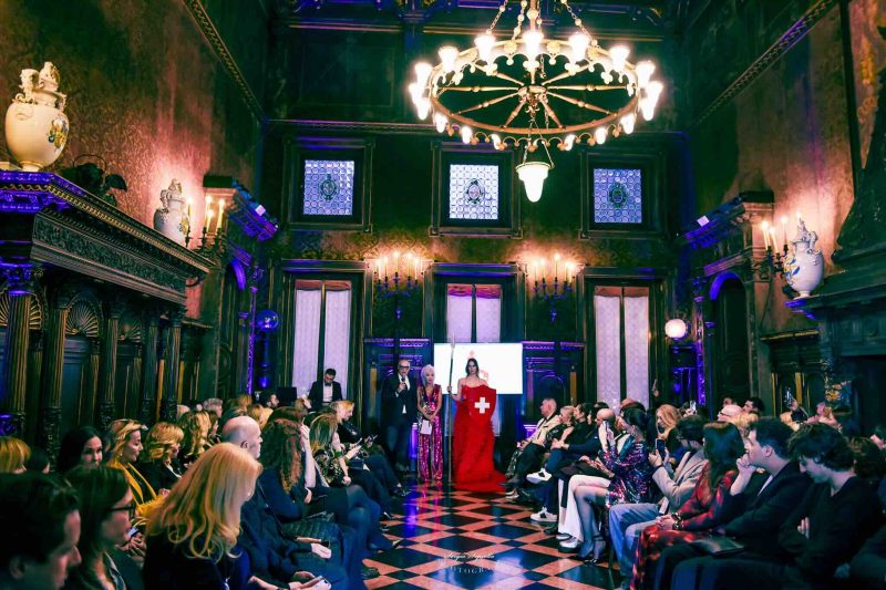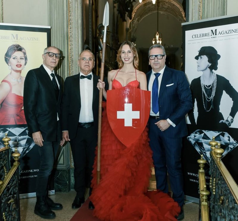 Special Guest dell’evento, il Presidente della Camera della Moda Svizzera, Dott. FrancoTaranto. Con lui il simbolo di questa grande nazione, “Madre Helvetia”, rappresentata dalla bellissima modella svizzera Nastia Kuchereenko. Il presidente ha ringraziato l’organizzazione e ha sensibilizzato tutti gli ospiti sull’importanza di questi eventi al fine di poter dare visibilità alle splendide creazioni degli stilisti. Dopo questo intenso momento commemorativo, la serata è proseguita con le sfilate di grandi eccellenze.