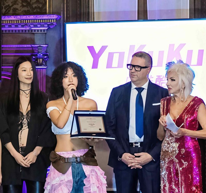 Il premio è stato conferito al brand cinese YOKUKU con la dicitura: Best Fashion Designer “In Honour of its Creativity and Innovation”. Un premio importante che la stilista ha accolto con grande entusiasmo e commozione.