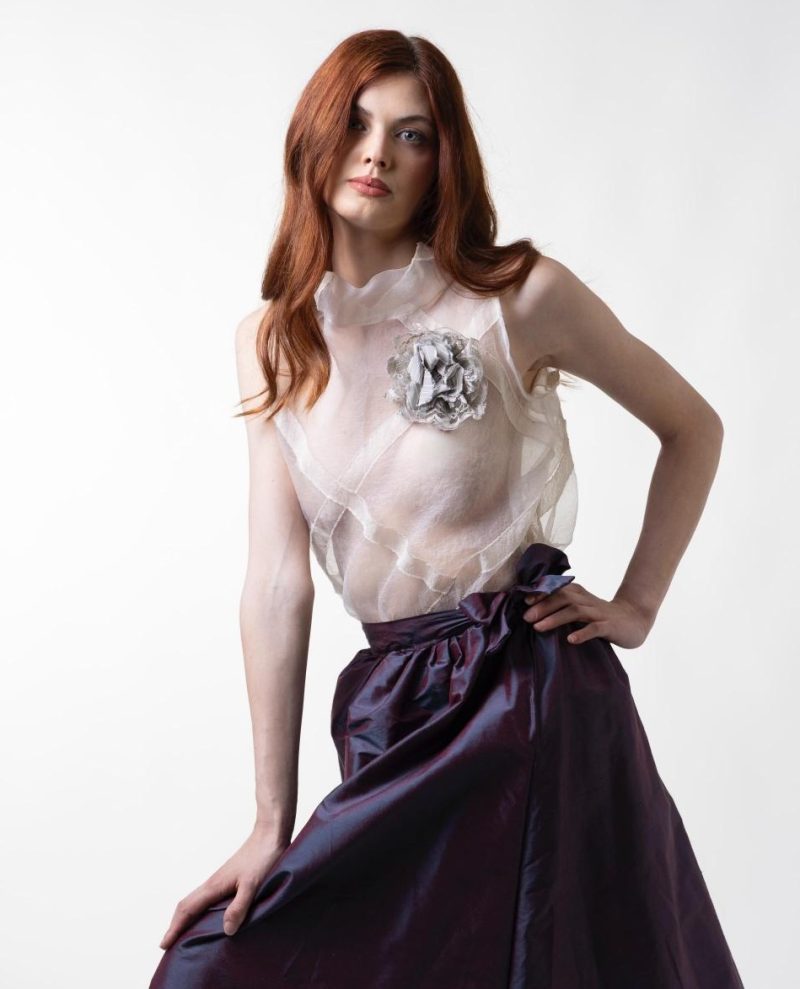 Sceglierei la cura maniacale dei tessuti – scelti per il loro carattere, mai per la loro convenzione – e la capacità di trasformarli in scenografie indossabili. Amo lavorare con materiali che dialogano fra leggerezza e struttura: organze, tulle, seta pura, ma anche elementi più audaci come piume, perle e cristalli. I capi iconici? Senza dubbio il bustier, gli abiti-scultura e le gonne vaporose che giocano con i volumi. La donna Dray è colta, sofisticata, con un senso estetico affinato: una donna che non indossa per apparire, ma per dichiarare chi è.