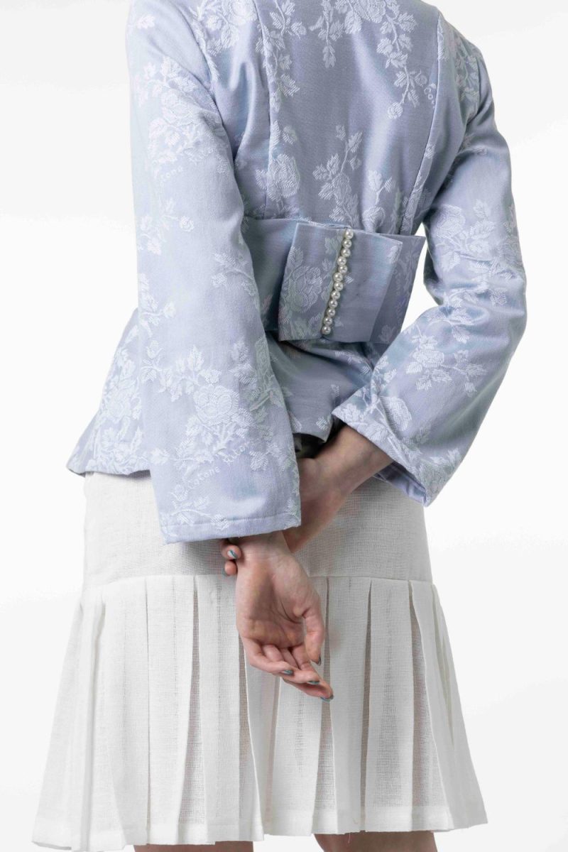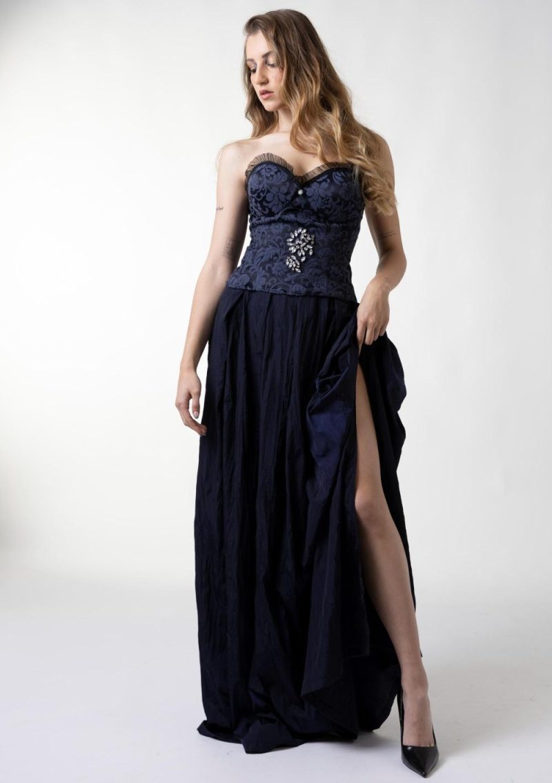 Il bustier è per me un manifesto: incarna la dualità tra struttura e sensualità. Mi affascina perché è una corazza e insieme una carezza, un elemento che sostiene ma allo stesso tempo svela. Nelle sue linee c’è un richiamo all’architettura barocca, alle geometrie rinascimentali e ai giochi prospettici dell’arte. Nei materiali, mi lascio ispirare dalla trasparenza del tulle, dalla rigidità del crine, dal bagliore dei cristalli che richiamano i mosaici bizantini. Ogni bustier è un’ode alla femminilità come forza e come poesia.