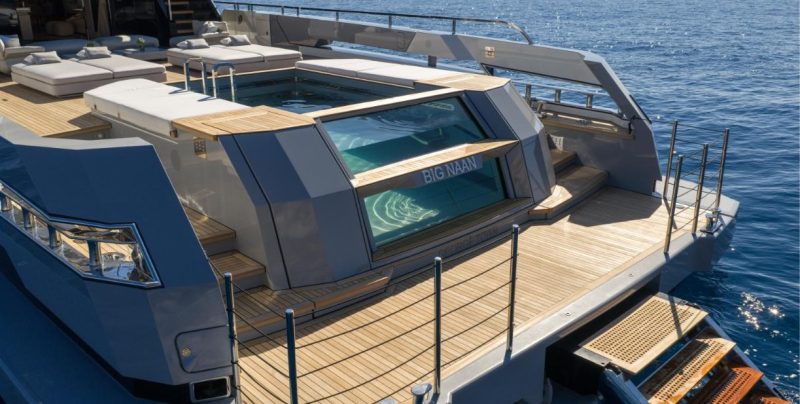 Il comfort in navigazione è garantito da due coppie di stabilizzatori, attivi sia in movimento che da fermi. Due dissalatori generano dieci metri cubi di acqua dolce al giorno. Il sistema di riduzione catalitica selettiva (SCR) soddisfa gli standard di emissione IMO Tier III permettendo di navigare anche in aree marine protette. Compatto ma versatile, Big Naan è un panfilo visionario all’avanguardia, sintesi perfetta tra potenza ed eleganza.